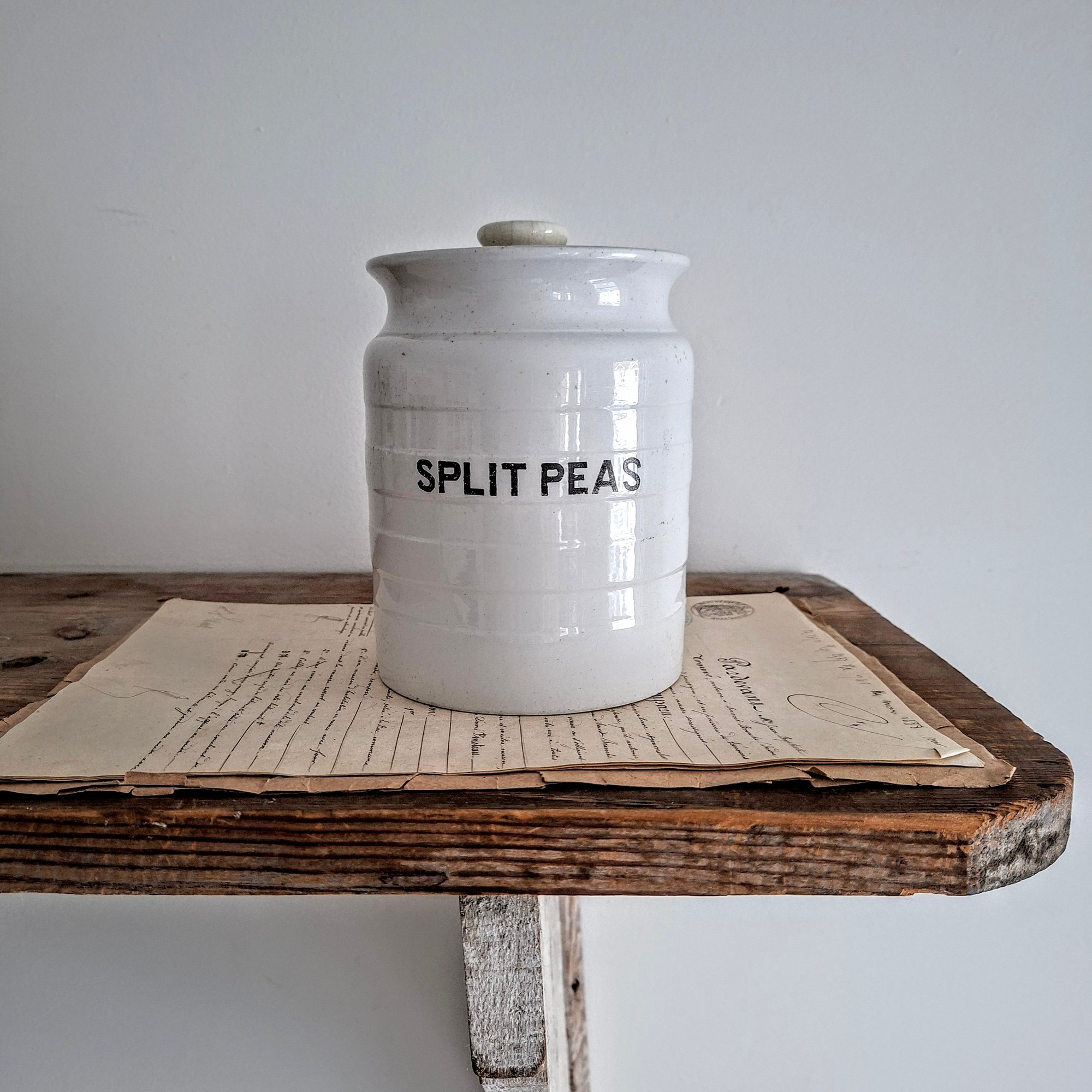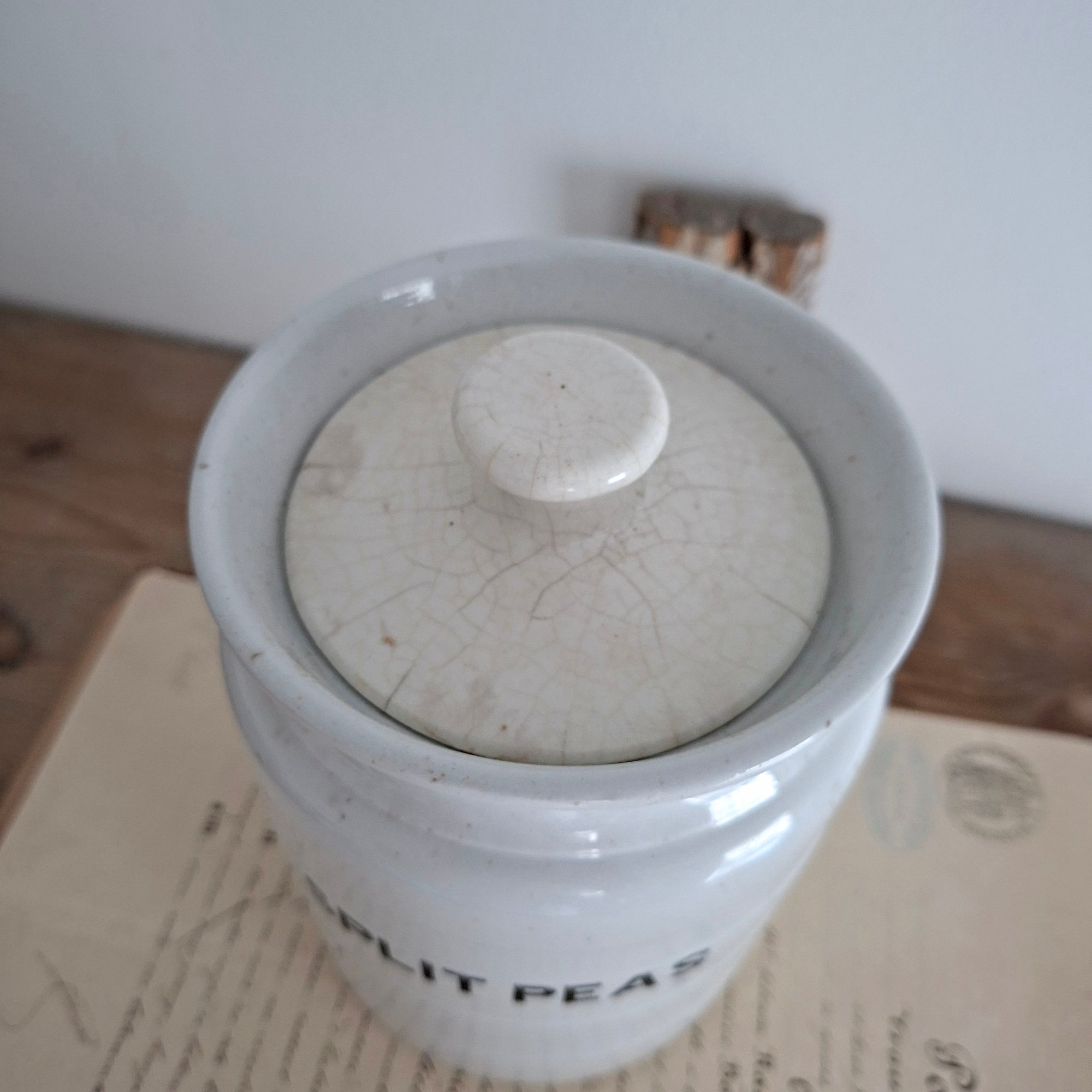 Antique Victorian Banded Storage Jar Split Peas