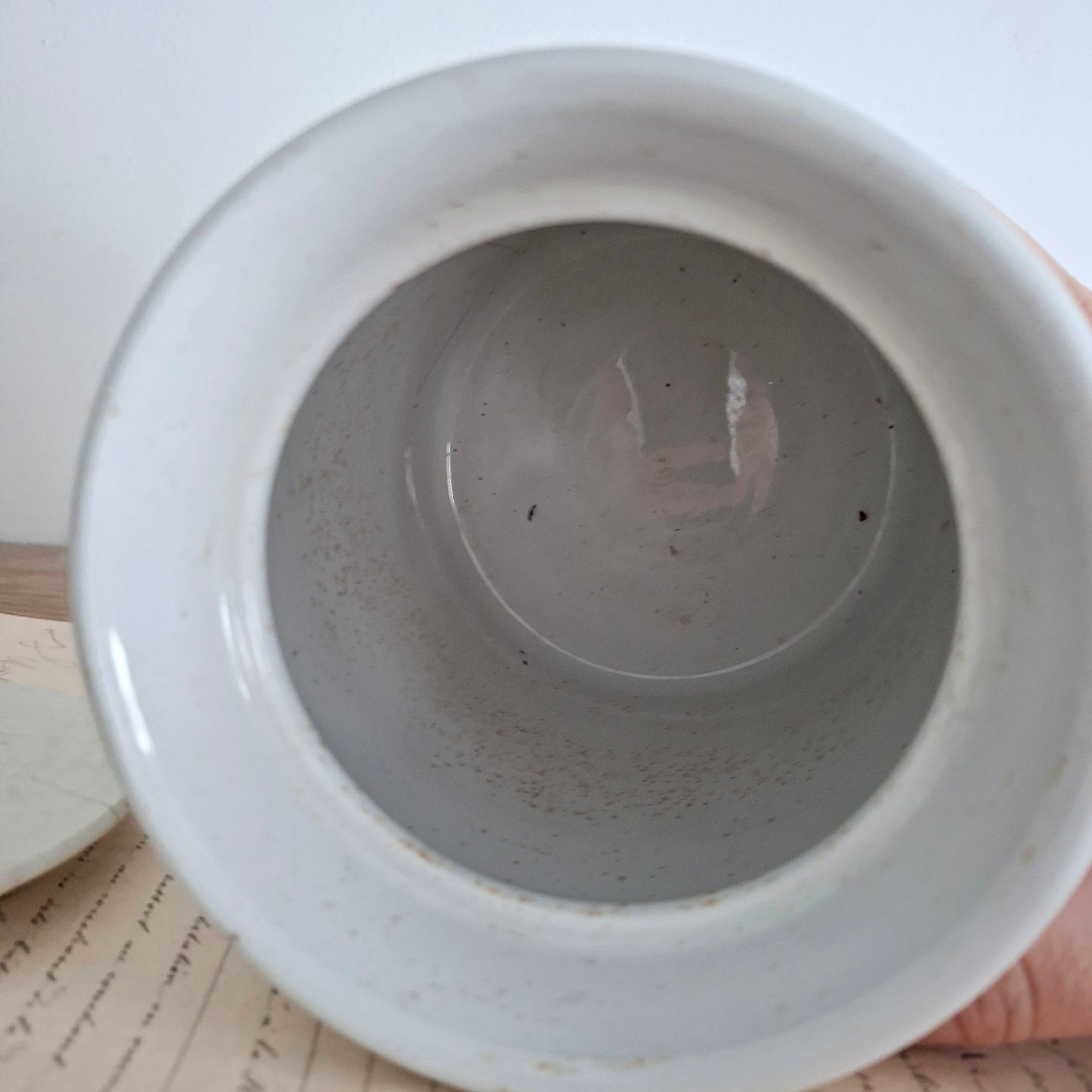 Please note there is age-related staining as well glazing imperfections and crazing but no cracks or chips on the jar.