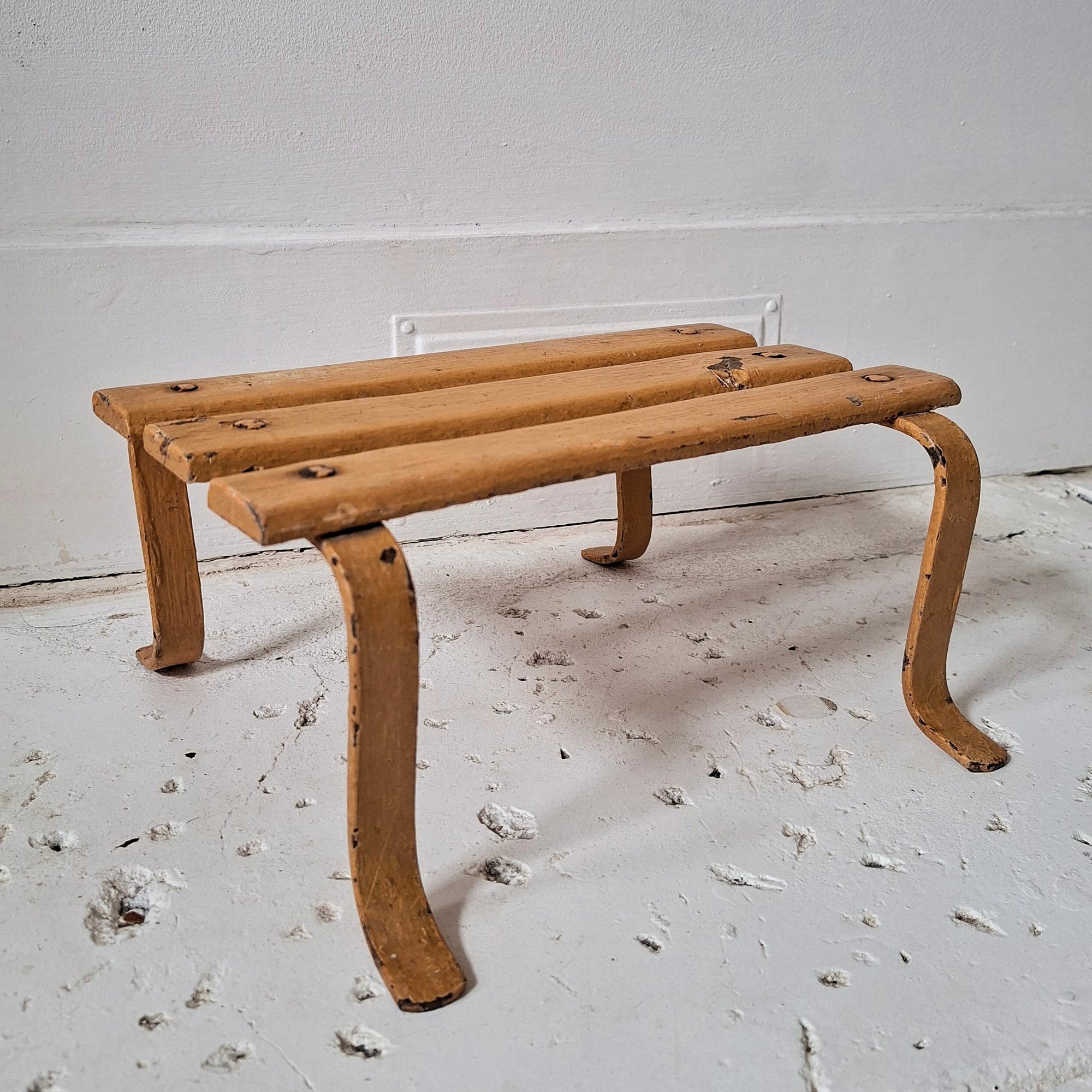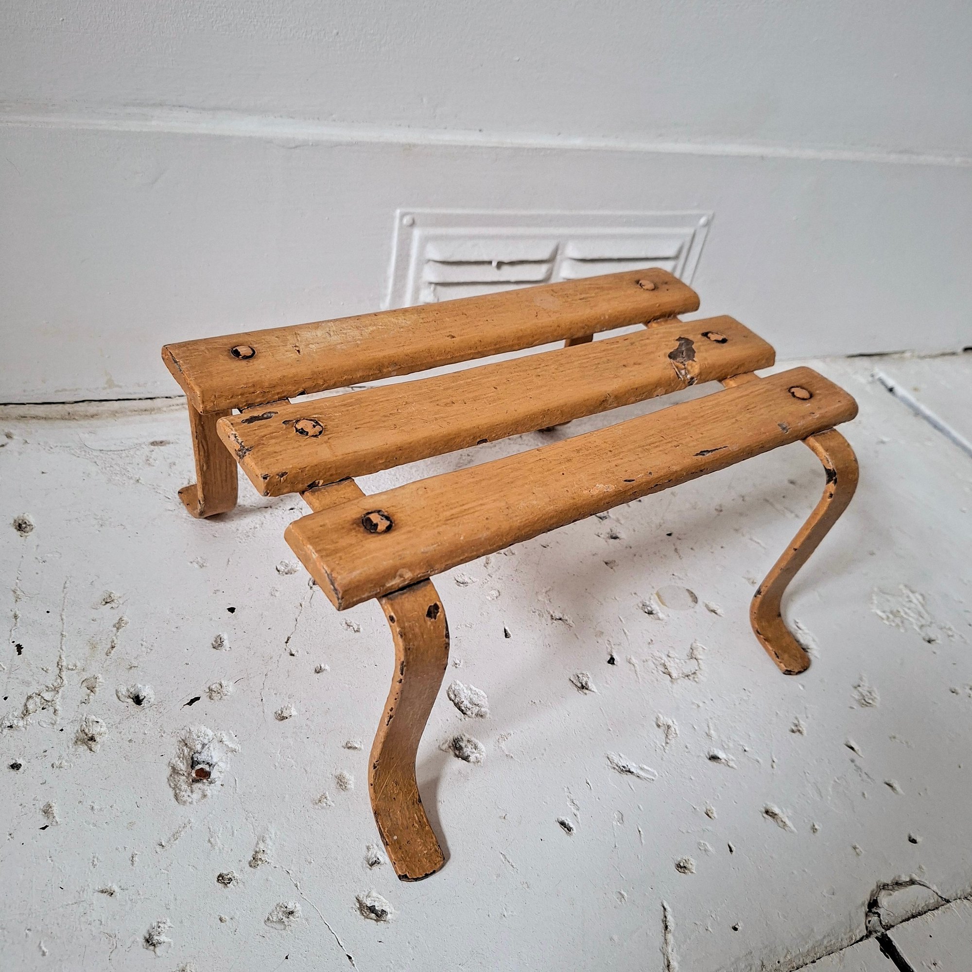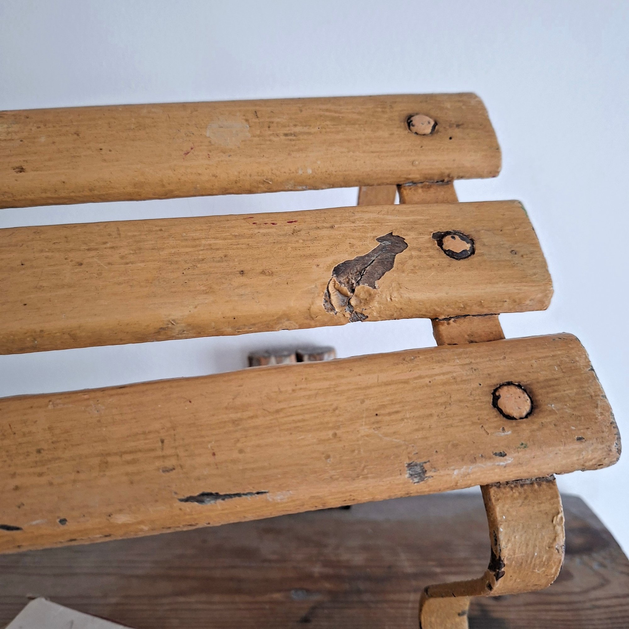 Wonderful warm mustardy colour, chippy wooden seat and gorgeous curvy metal legs... what's not to love?