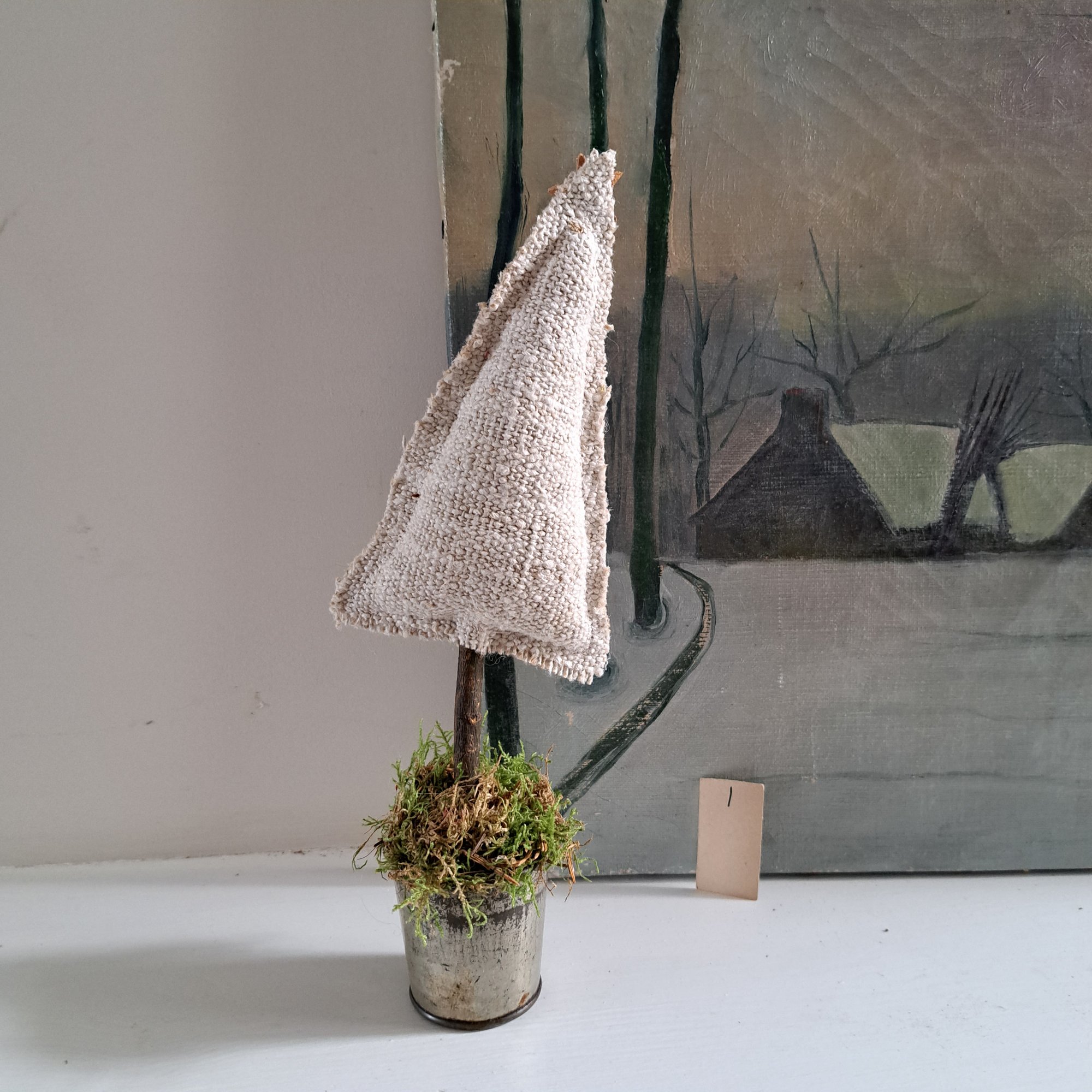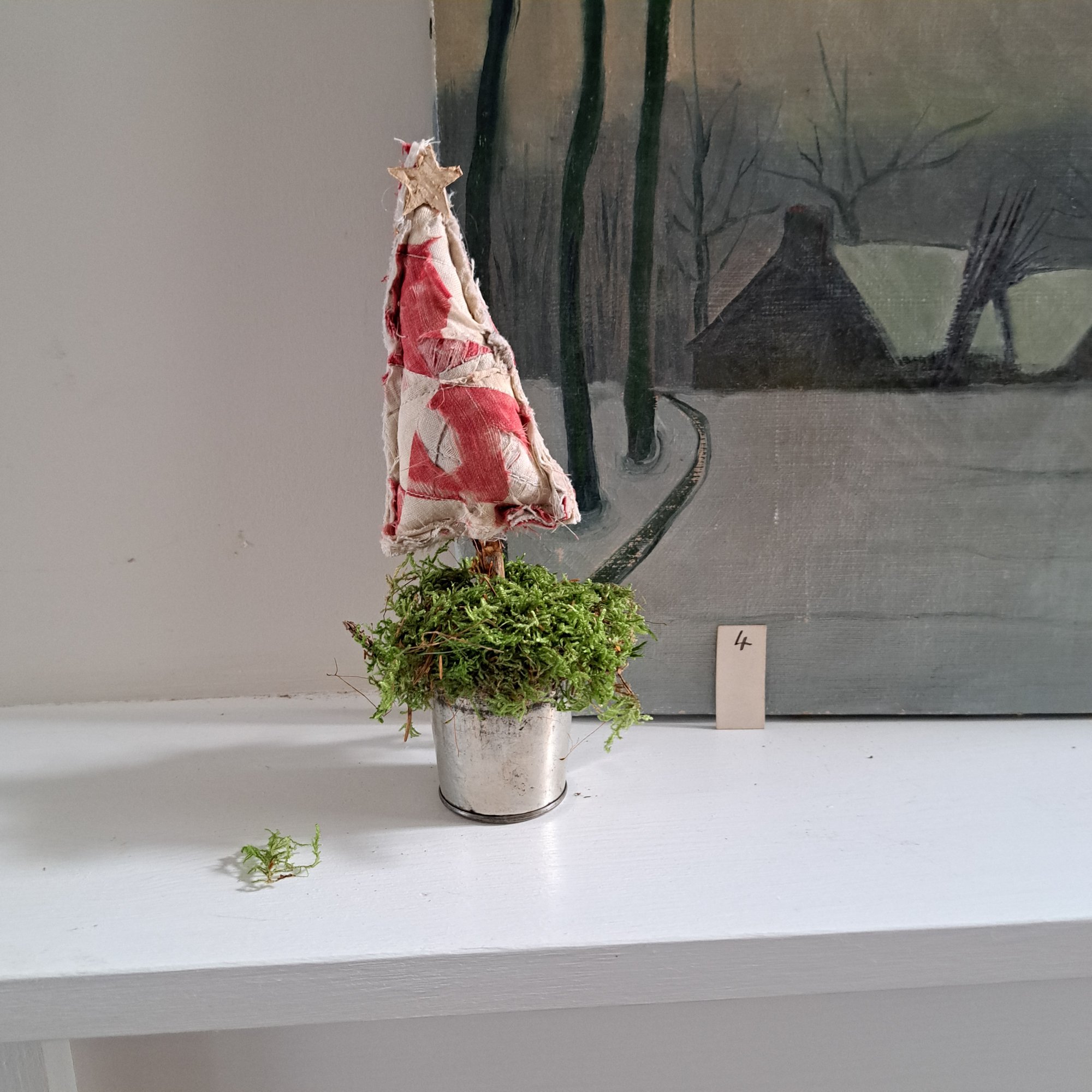 Handmade by me from old fabrics and pastry pots. Wonky, rustic and full of charm.