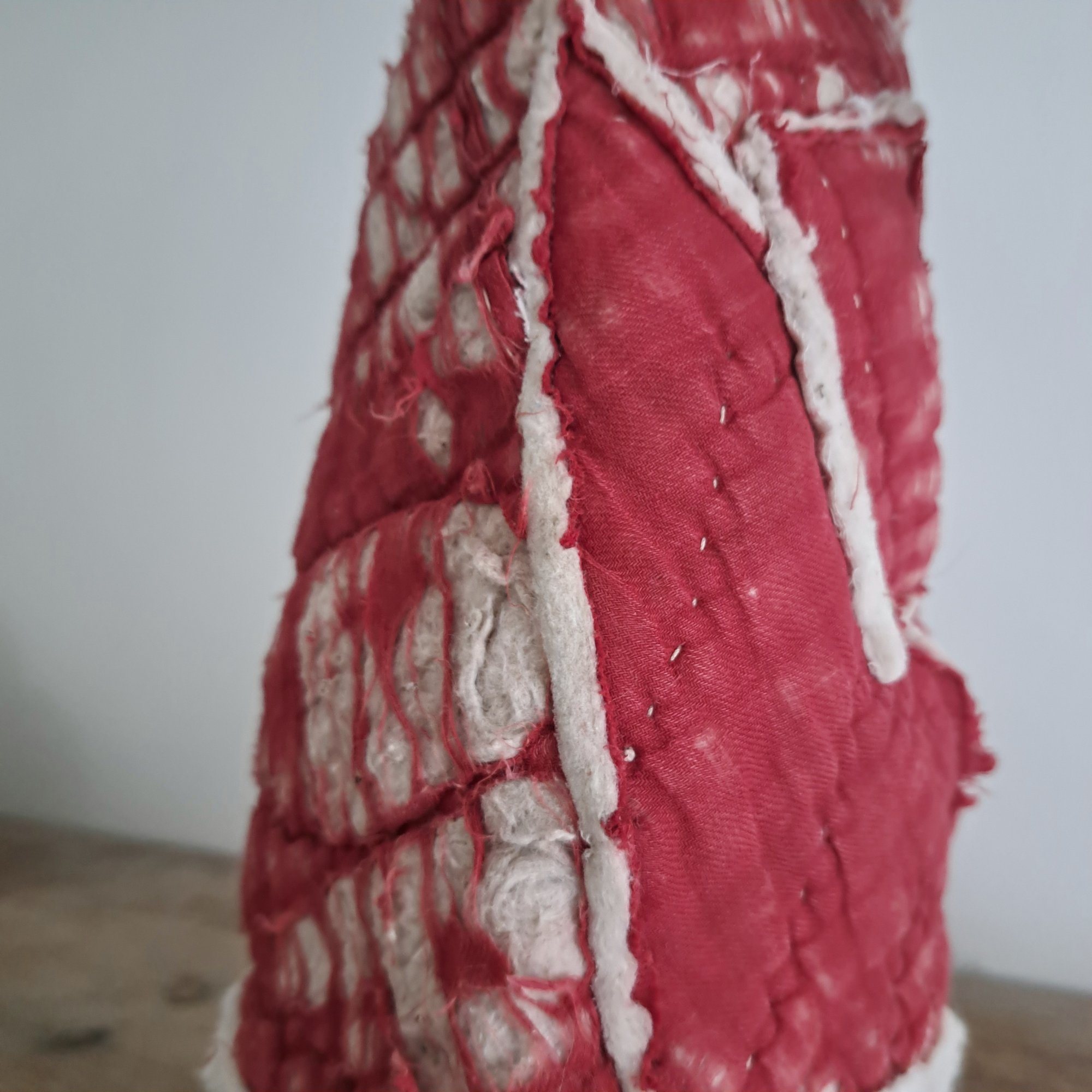 Handmade by me - wonky Santa hat made from an old weathered quilt.