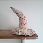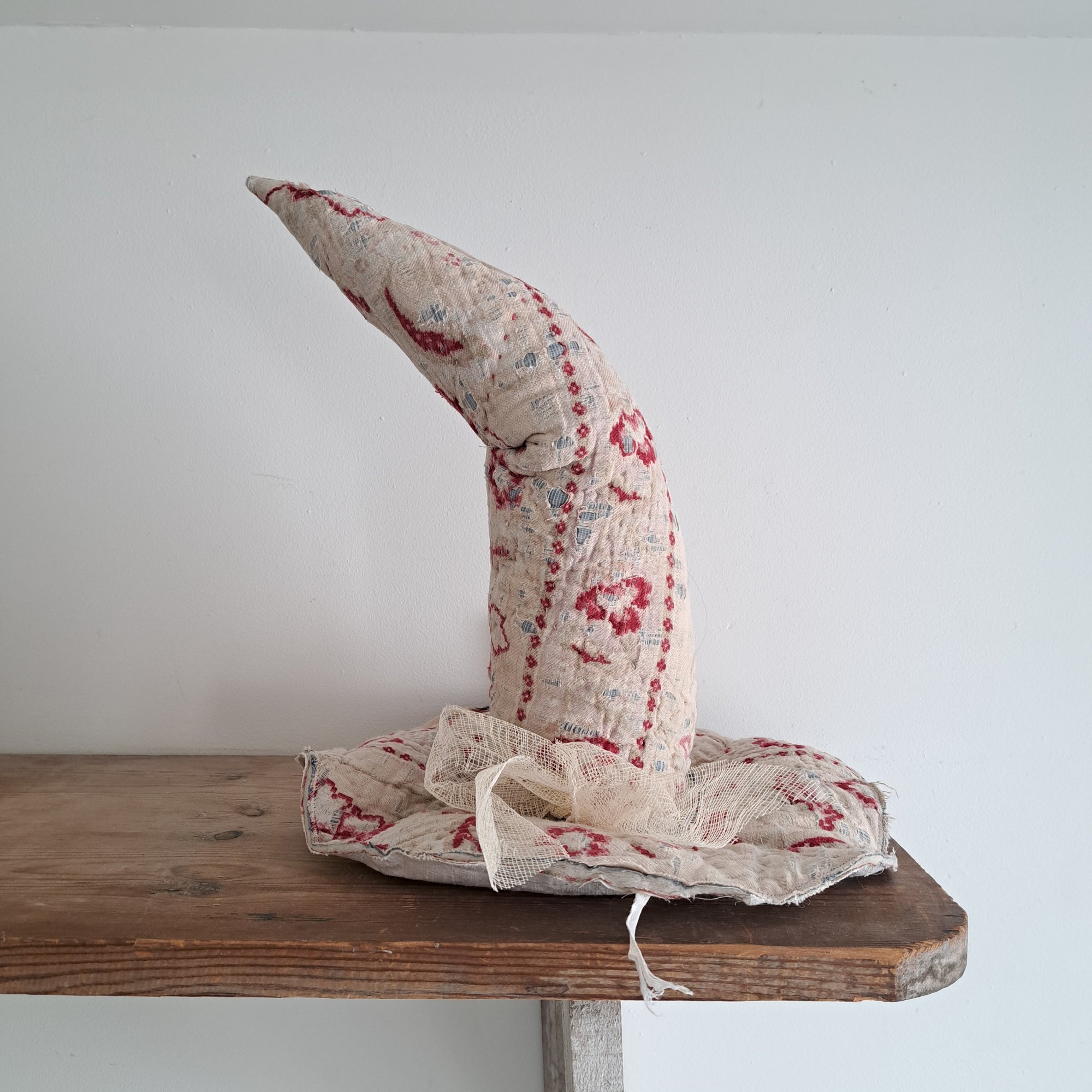 Handmade by me - wonky and rather rustic witch hat made from an old tatty quilt.
