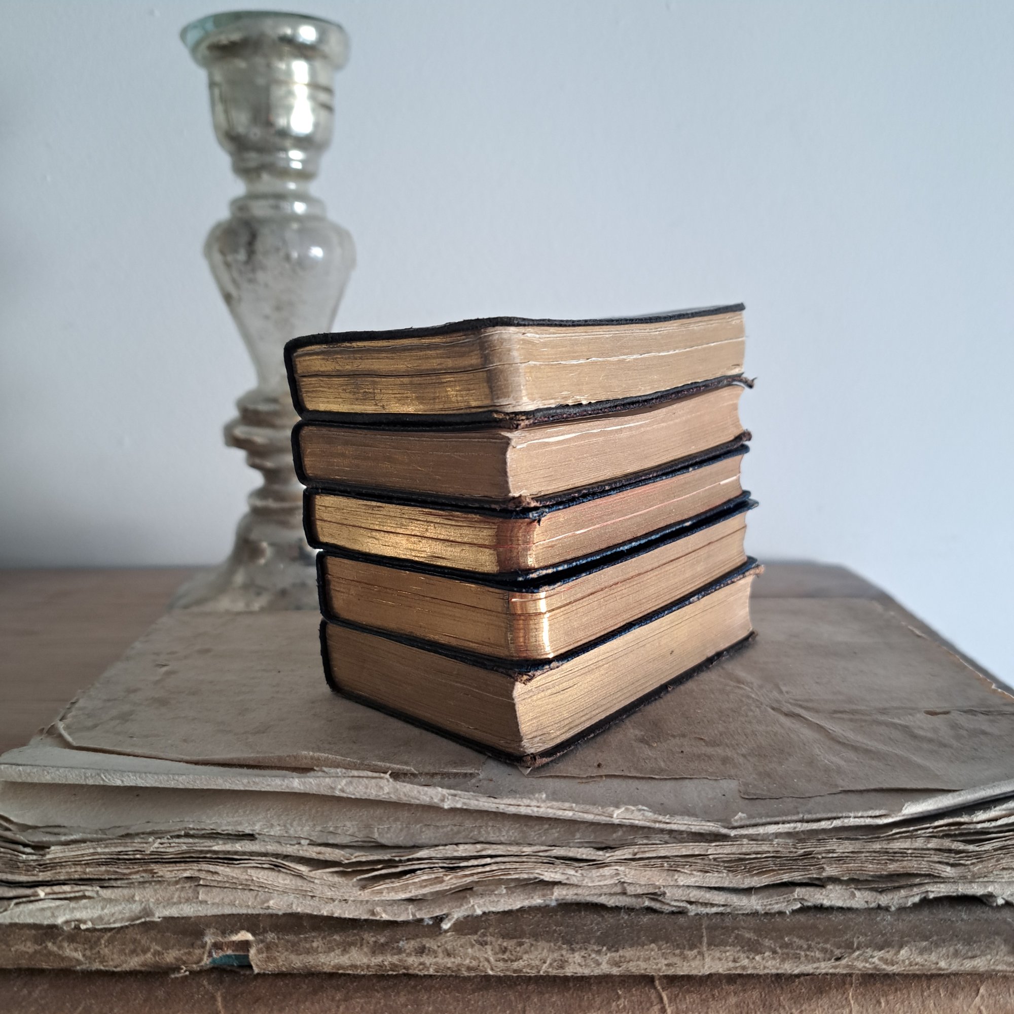 I just love these little black leather-bound books. Perfect to add a little texture to your shelf.
