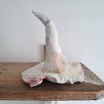 Handmade by me - wonky and rather rustic witch hat made from an old quilt.