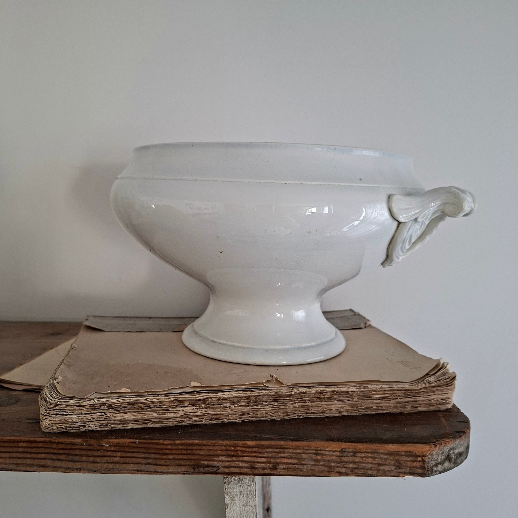 Stunning Large White Soupière With Subtle Wear