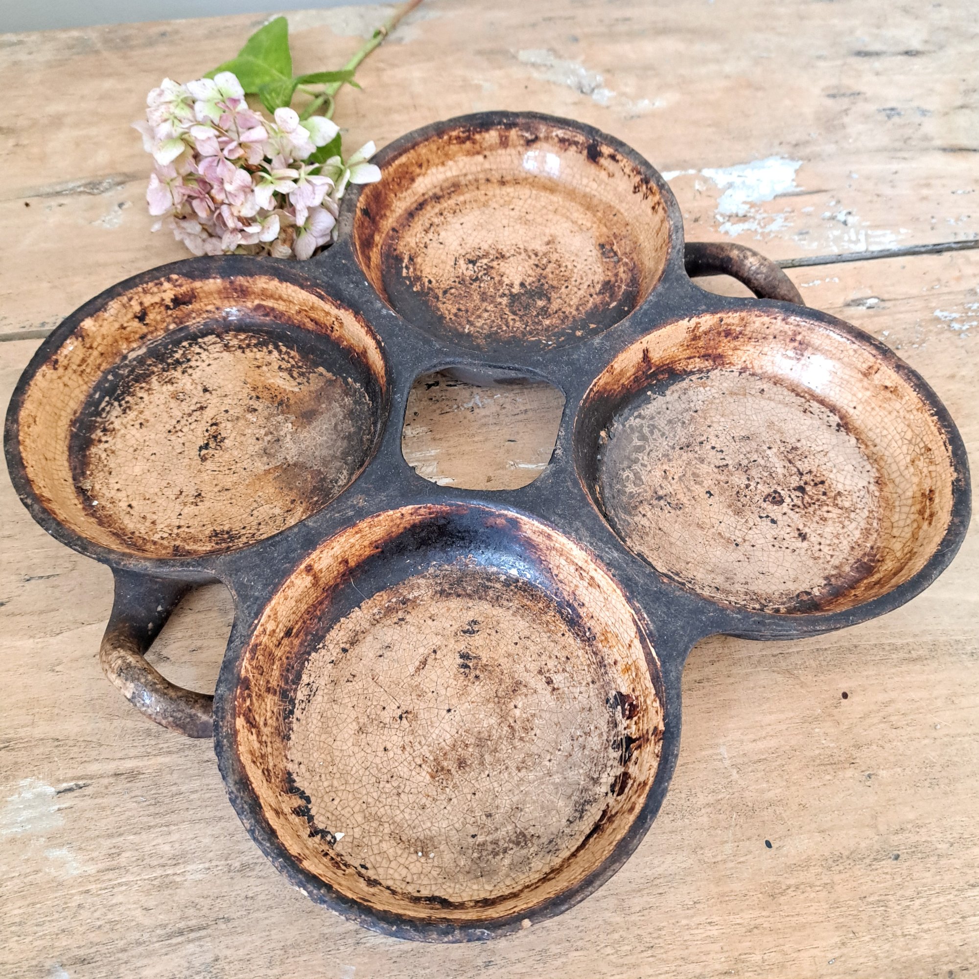 Stunning Worn Antique Pancake Dish