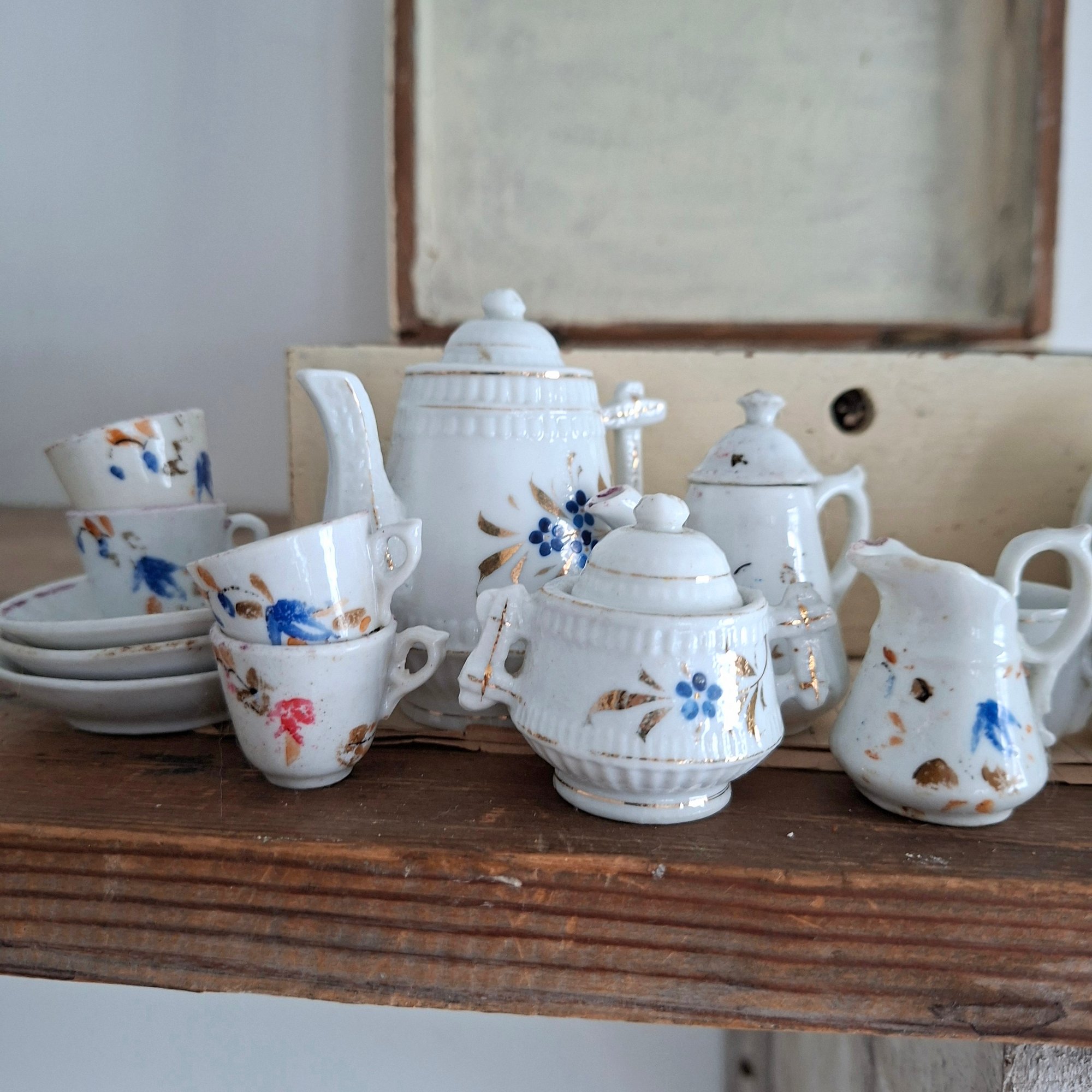 Another day another magical box. This time full of gorgeous worn and weathered doll's crockery. Perfect to display or add to a collection.