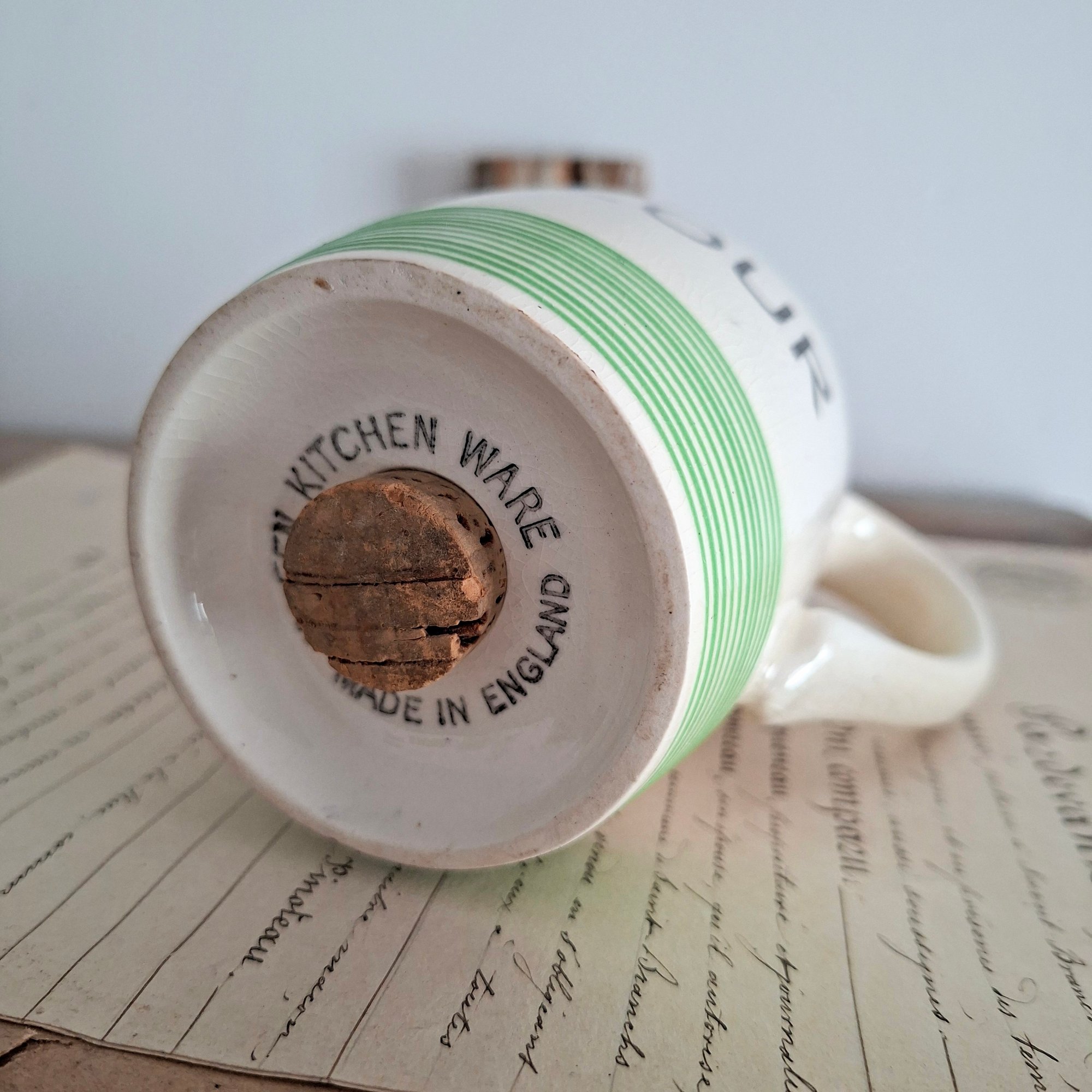 Fabulous piece of vintage kitchenware from 1950s.Perfect for display or use. Still has its original cork stopper.